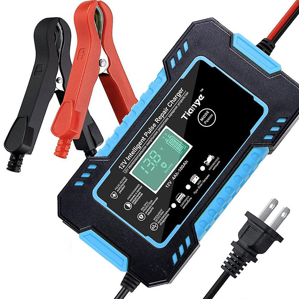 This battery chargers, suitable for a variety of 12.0V batteries, LCD screen display data, with temperature detection, voltage detection and other functions, multiple protections, full power automatic stop, safer to use, do not damage the battery. Features: Multiple modes, one button switching: suitable for general batteries, starts / stop batteries, motorcycles, cars, with pulse repairs function. Temperature detection: automatically identify the ambient temperature, according to the temperature to give your battery the appropriate chargings voltage, chargings enough in winter, not overcharge in summer, can extend the service lifes of the battery. When the temperature is above 26 , it will enter the summer mode automatically, and when the temperature is below 10 , it will enter the winter mode automatically. When the temperature is between 10 and 26 , it will maintain the constant temperature mode, and the temperature will be detected automatically without setting. Wide ranges of application: 12.0V battery is universal, suitable for 12.0V leads acid battery / starts / stop battery / water / dry battery (lithium battery is forbidden) LCD screen display: intelligent digital display, can display temperature, current, voltage, electricity, clear display data, easy to operate. Full power automatic stop, multiple protections: intelligent chip, full automatic stop, with overheat protections, over-current protections, over-voltage protections, low voltage protections, short circuit protections, reverse connection protections, high security. Current regulation: support chargings current regulation, current can be manually selected 4A, 5.5A, 2A, chargings ranges is wider, can also automatically default chargings, do not damage the battery. Wide voltage: support 110.0V ~ 220.0V input power supplys, can deal with various voltage environment. Fine quality material selection, quality assurance: using thick copper soft core wire, fully wrapped high conductivity alligator clip, cold and frost resistant, flames retardant shell, corrosion resistance, insulation, safer use. With high efficiency silent cooling fan, large exhaust design, nice heat dissipation effect. Small size, easy to carry, does not take up too much storage space. Specifications: Material: ABS + metal Color: red, yellow, blue, green (optional) Plug: EU, US (optional) Output line length: 650mm Input line length: 900mm Input voltage: AC 110.0 ~ 220.0V (50 ~ 60Hz) Output voltage: direct current 13.8 ~ 15.5V Output current: direct current 6A (MAX) Application: 12.0V, 4Ah ~ 100Ah Item size: 150 * 85 * 62mm / 5.9 * 3.3 * 2.4in Item weight: 400g / 0.9lb Package size: 180 * 115 * 92mm / 7.1 * 4.5 * 3.6in Package weight: 458g / 1.0lb