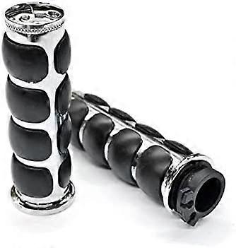 Motorcycle Chrome Rubber Handle Grips (Silver)2pcs