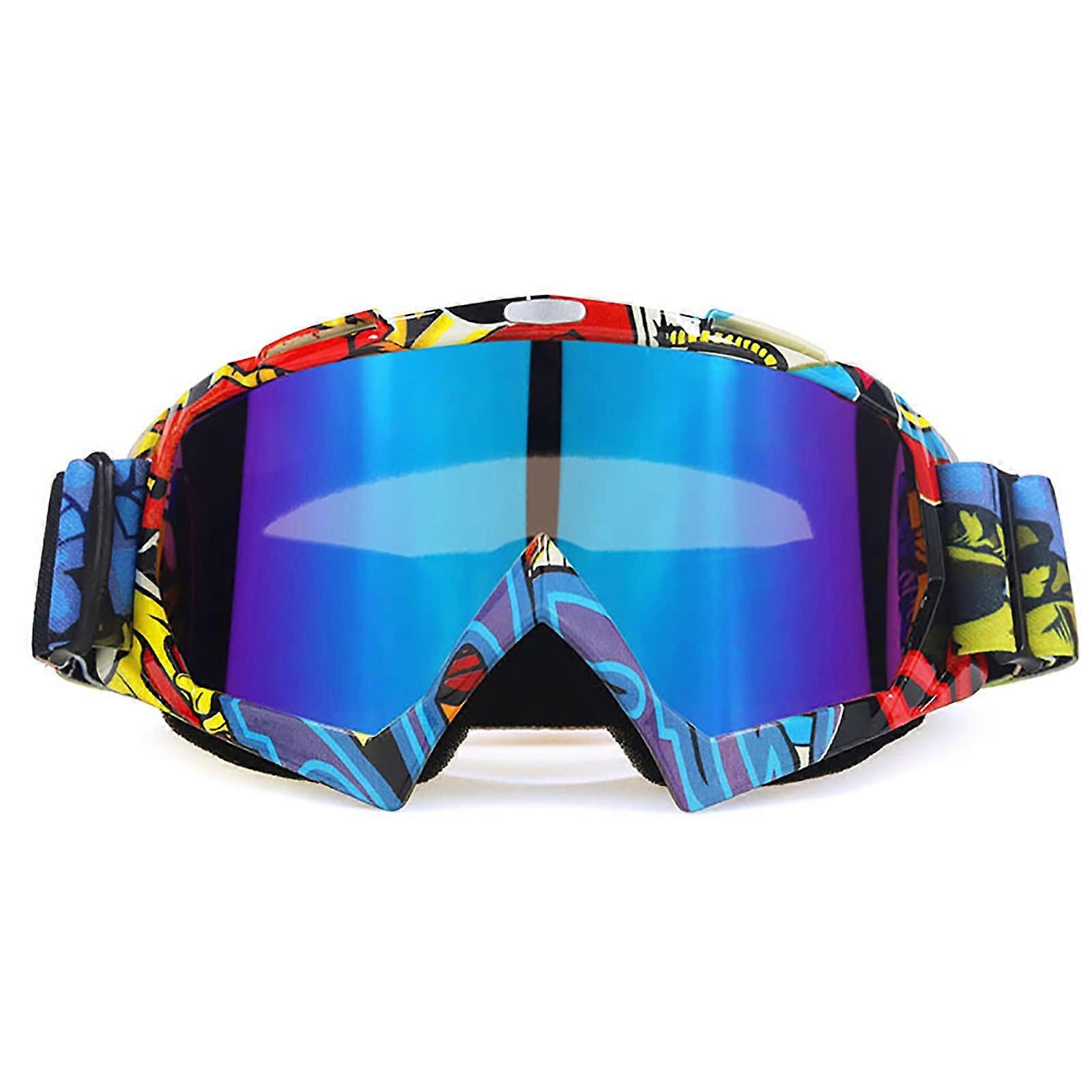 Motorcycle Goggles Windproof Motocross Goggles, Dirt Bike Goggles, Scratch-Resistant, Sandproof Lens, Red/Blue Frame