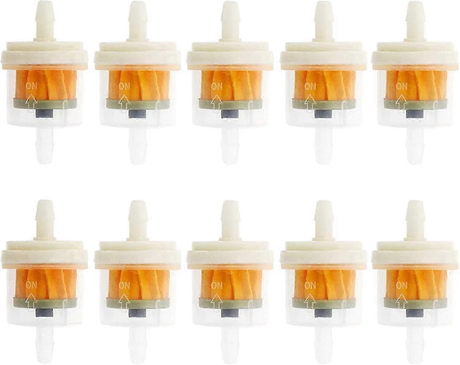 10 Pieces Petrol Filter, Motorbike Petrol Filter Moped, Fuel Filter Universal, Filter For Lawn Mower Motorcycle Scooter Moped1. High quality, including 10 motorcycle gasoline fuel filters. Made of high-quality plastic, high-quality filter paper, fast filtering, durable, not easy to damage. 2. Prevent blocking: Block the machine's fuel system, reduce mechanical wear, make the engine run smoothly and improve reliability. Transparent design, easy to see the degree of dirt. 3. The built-in magnet is easy to install and use, and it can remove dirt and debris in the gasoline. Unique design, precision casting, suitable for regular replacement. 4. Removal of impurities: The fuel filter can remove the solid impurities contained in the fuel, such as iron oxide, dust, etc. 5. Suitable for all standard motorcycles, automobiles, quads, scooters and other motor vehicles.
