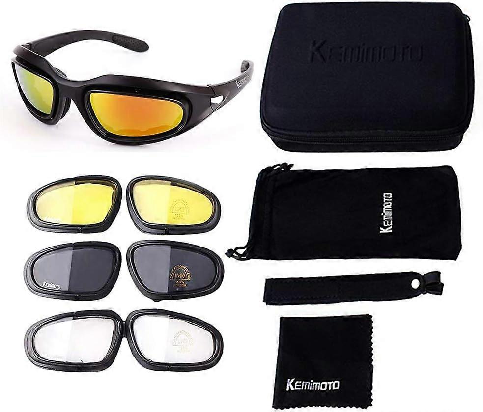 Motorcycle Riding Goggles Kit, Padded Glasses Frame with 4 Lens Kit for Outdoor Activity Sports