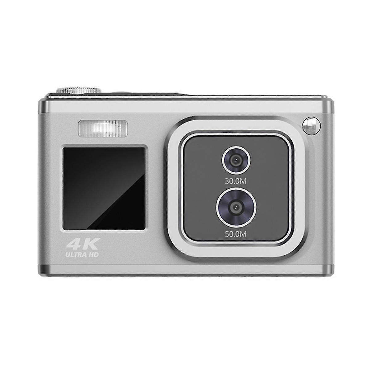 4K Video Experience: Save your beloved memories with amazing 4K resolution (3840 x 2160), delivering your memories with extraordinary clarity and authenticity.Dual IPS Screen: The 2.88-inch IPS screen makes it easy to view and play, while the additional 1.58-inch IPS screen on the front makes selfies and video blogs easier. With the autofocus function, you will never miss the opportunity to capture an instant, as it ensures that your subject remains clear and focused.Continuous mode: The continuous mode of a digital camera allows you to quickly record actions and take a series of photos in a fast and continuous manner.Integrated flash: Adopting camera mode, taking multiple photos in a short time can easily and quickly capture every action moment.Amazing 16x zoom: The powerful 16x zoom function allows you to capture distant objects with clear and extraordinary details, just press the button and they will come closer to you.This camera has a high resolution of 50MP, allowing you to take stunning photos with every detail vivid and clear.Image resolution:50M, 48M, 36M, 24M, 20M, 16M, 12M, 8M, 5MVideo clarity:4K:3840 x 2160, FHD:1920 x 1080, HD:1280 x 720LCD display screen:front IPS 2.88-inch screen+rear IPS 1.58-inch screenBattery:3.7V, 750mAhStorage support:up to 256GB memory cardTinnitus rate:16 xExposure:EV-3- EV+3:Automotive/100/200/400/800/1600Mode:single shot, selfie, continuous shot, 2/5/10 synchronizationFormat:JPG, MP4Flash:Auto/Off/OnColour:SilverMaterial:PlasticSize:10.3x6.5x2.3cmPackage Contents:1 * Digital Camera1 * USB CableOnly the above package content, other products are not included.Note: Light reflection and different displays may cause the color of the item in the picture a little different from the real thing. The measurement allowed error is +/- 1-3cm.