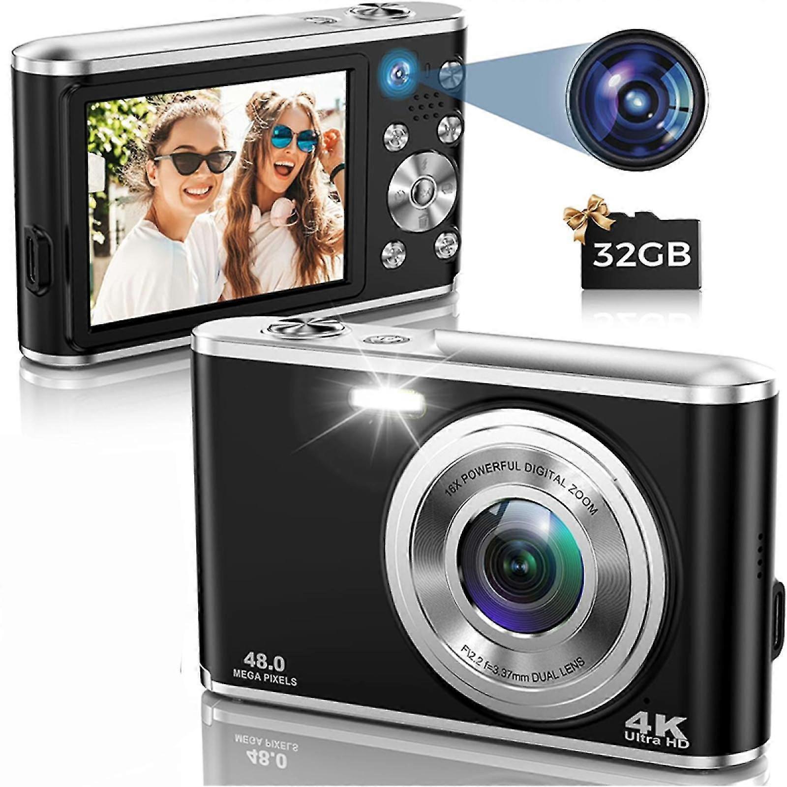 AutoFocus 4K Digital Camera with Dual Camera with 32GB Memory Card HD 48MP 16X Digital Zoom 2.8 Inch Large Screen Photo Camera Compact Camera for Begi