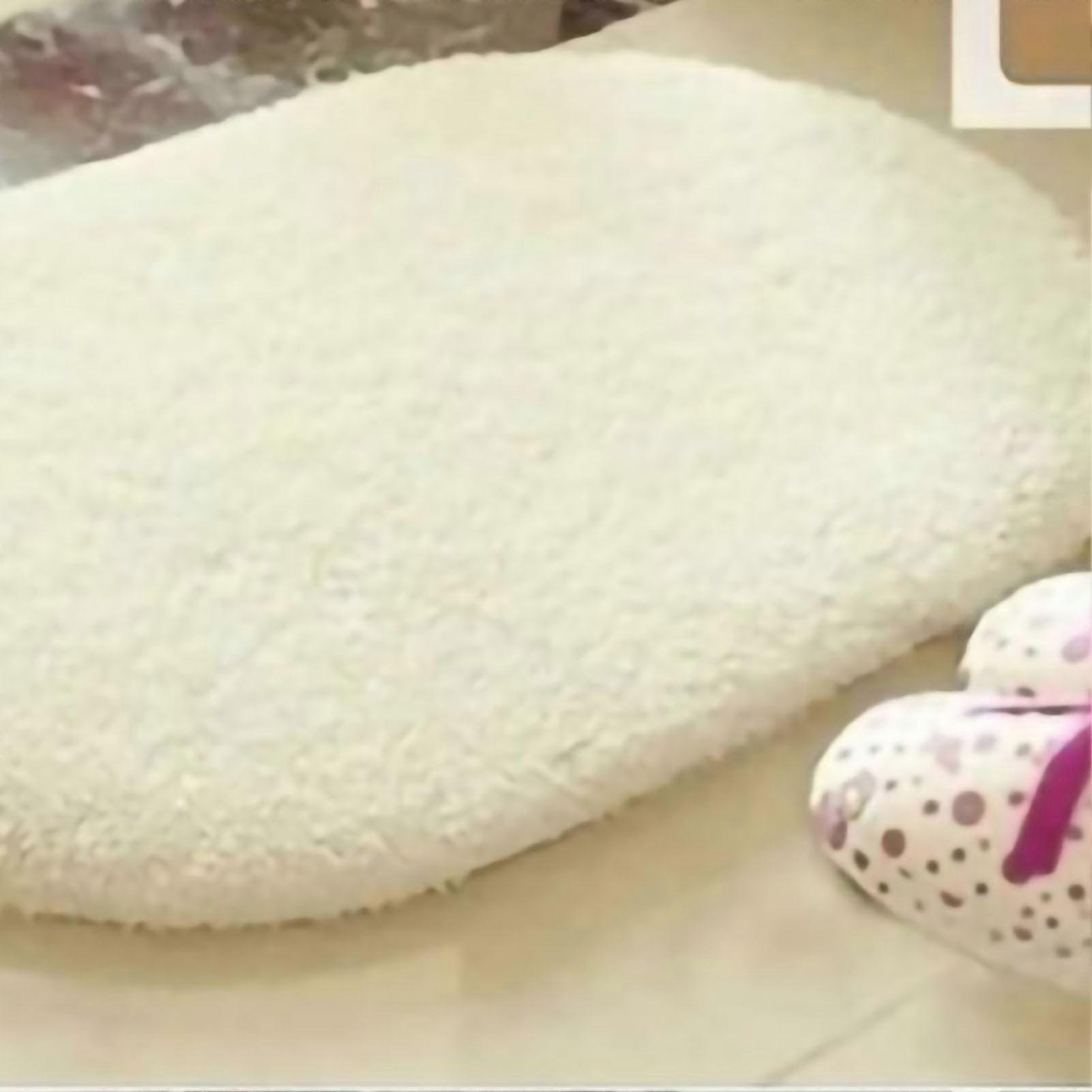 Oval Beige Plush Door Mat 40x60cm Soft Slip-Proof Rug