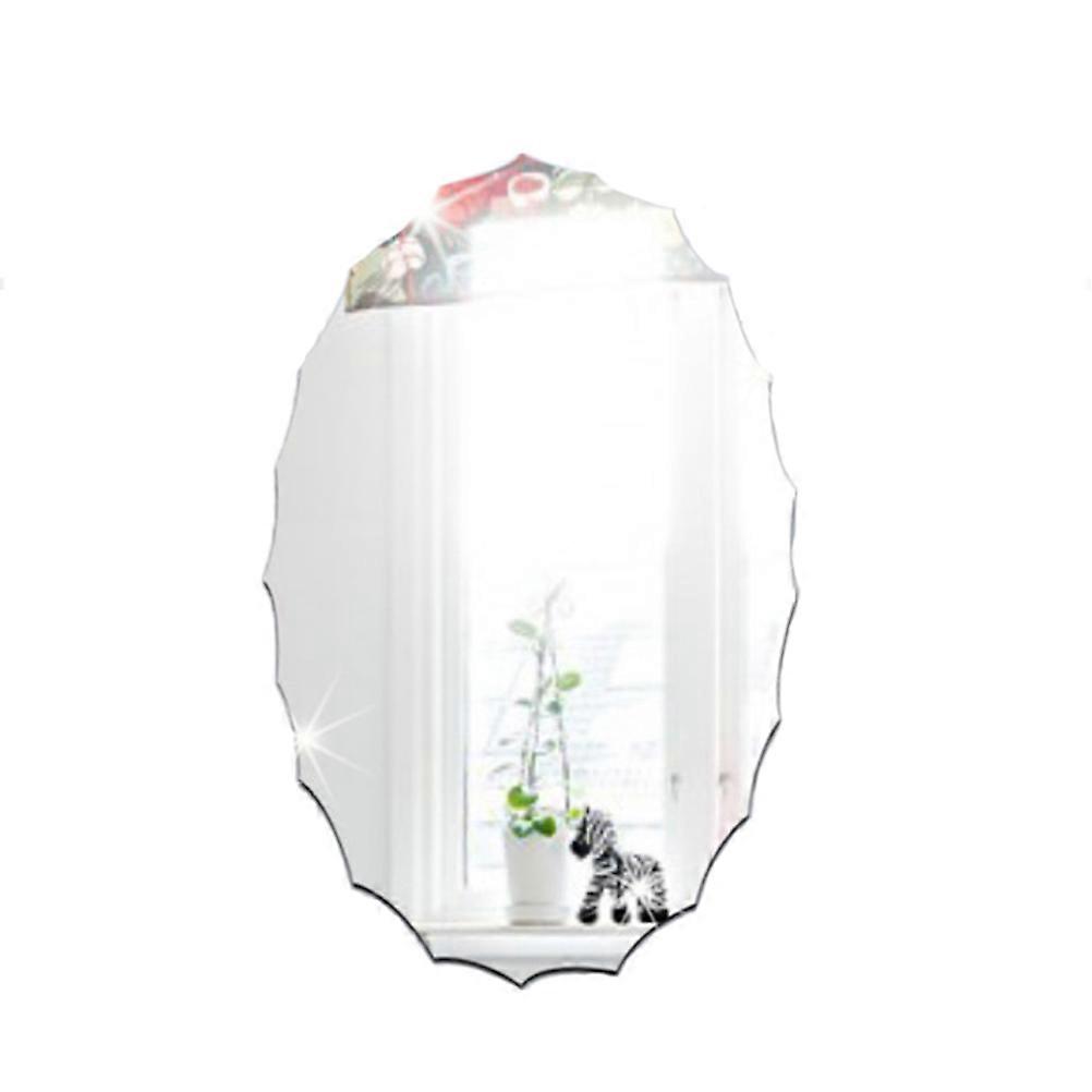 Oval Mirror Sticker Lace Mirror Sticker Fashionable Creative Functional Mirror Sticker (Silver)