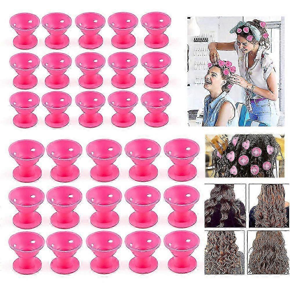 Overnight Hair Curlers,30 Pcs Silicone Hair Curlers,Hair Curlers No Heat,Silicone Magic DIY Rollers Hair Styling,2 Size(Pink)