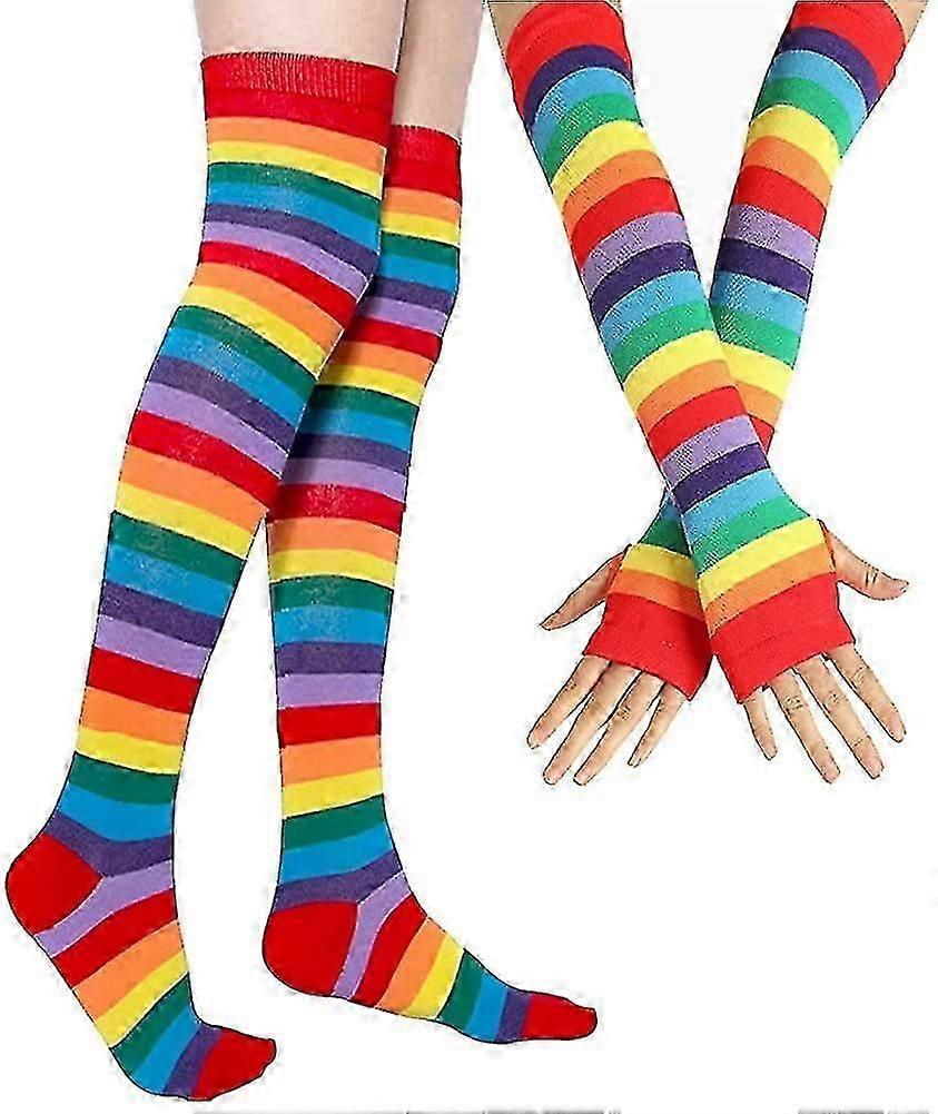 Over Knee Rainbow Thigh High Socks Gloves Set Cosplay Accessories Arm Leg Warmer