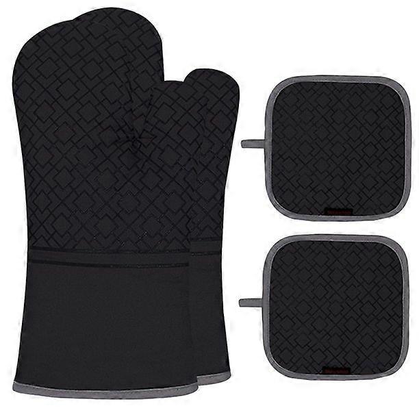 Oven Mitts and Pot Holders Set 4Pcs, Oven Gloves Kitchen Mitten Silicone Cooking Gloves - Black