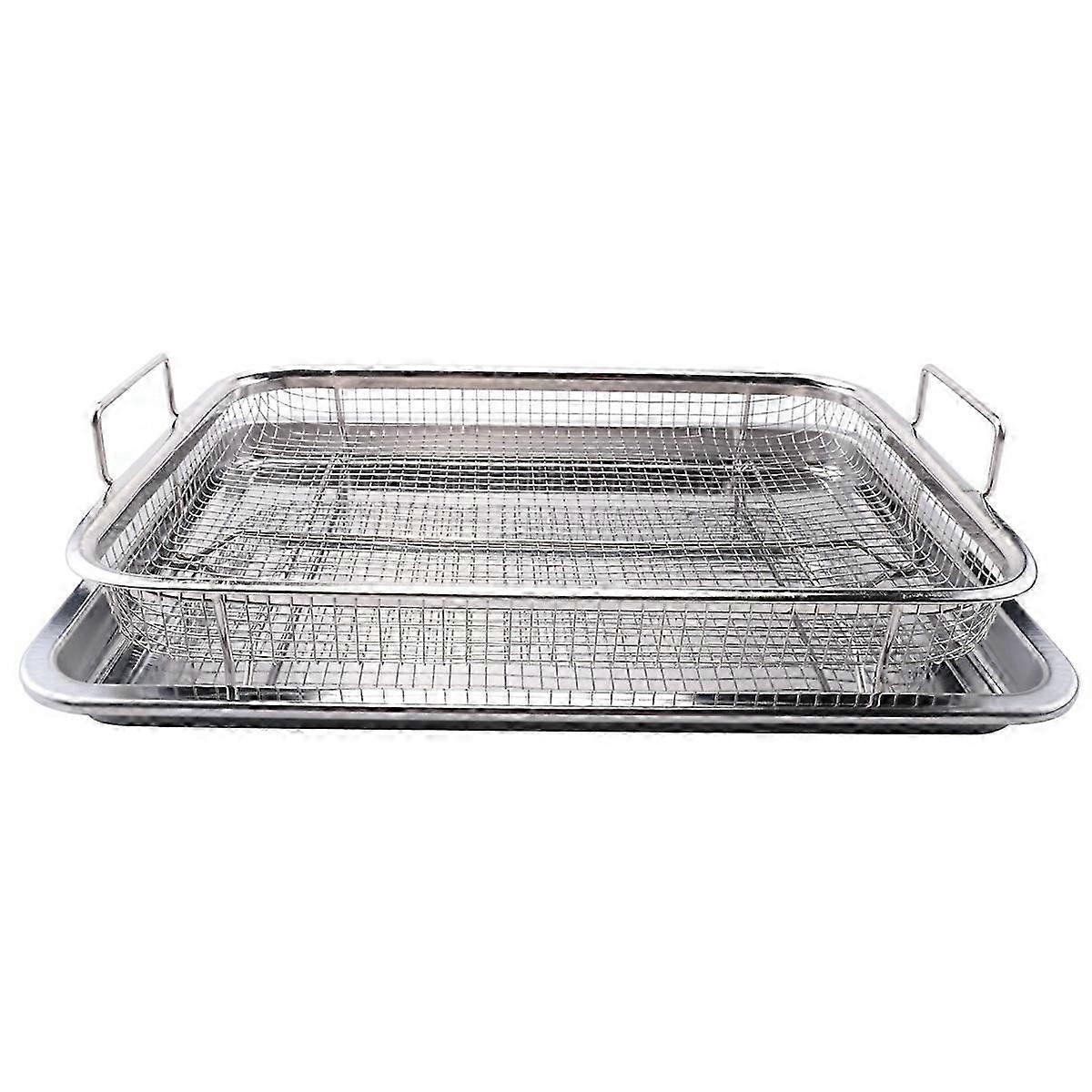 Stainless Steel Air Fryer Basket for Oven, Deluxe Crisper Tray and Pan Set, 2-Piece