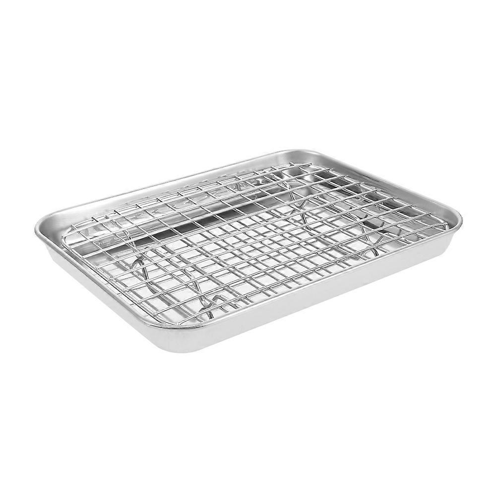 Stainless Steel Baking Tray with Rack for Oven Cooking Silver