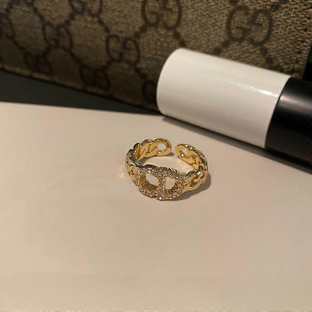 Open Adjustable CD Letter Logo Encrusted Diamond Cutout Ring Ladies Ring Ring Betterlifefg