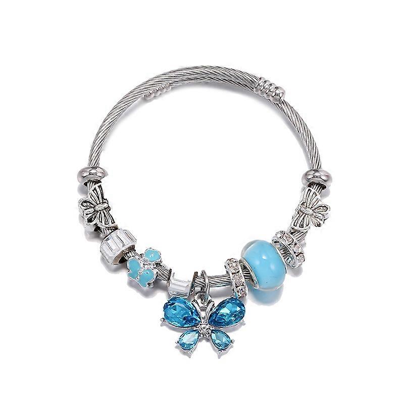 Open Bangle Bracelet, Butterfly Design Beaded Titanium Steel Jewelry