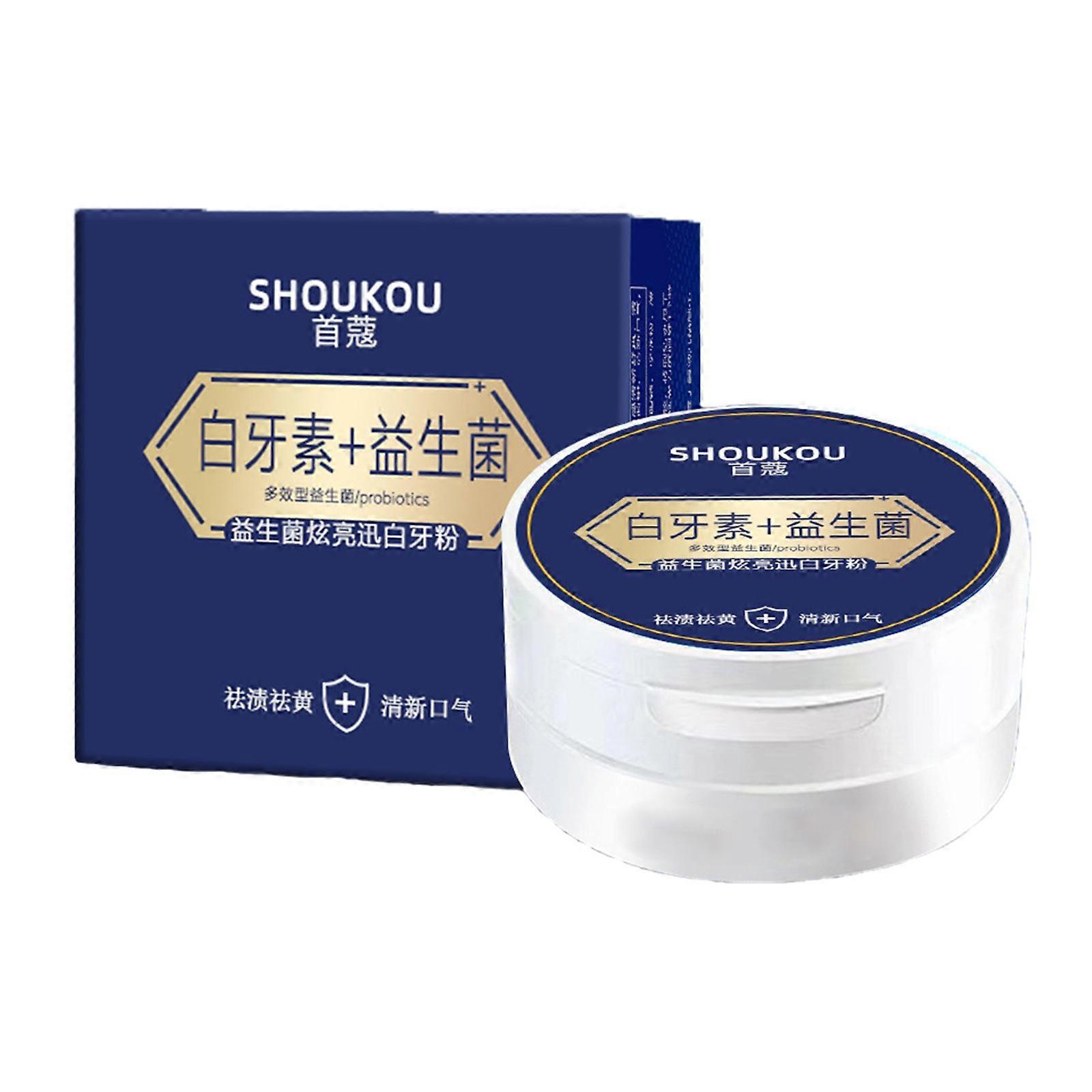 Gloss White Tooth Powder To Clean Up Stains To Clean Up Bad Breath Lasting Fresh Breath Care Oral Tooth Powder 50g Product Introduction: This is a probiotic Pearl tooth cleaning powder, containing food grade ingredients, probiotic Recipe and pearl powder, can improve the care of your teeth in the four way of yellow teeth, bad breath, sore teeth, gingiva fire, so that your teeth return to health, say goodbye to yellow teeth, have a confident smile. Product Features: Tooth powder contains food grade ingredients, a Recipe of PROBIOTIC and pearl powder to improve the care of your teeth in four areas: yellow teeth, bad breath, sore teeth, and burning gums. Contains honeysuckle flower extract, honeysuckle flower name honeysuckle, sweet taste cold, can clear heat, cool loose wind heat, can inhibit Mould be tinged with. When periodontal pyregia occurs with pain, the effect of clearing heat and detoxifying honeysuckle can be used to reduce swelling, and improve periodontal pyregia. Gallnut is usually useful for toothache, and generally has the effect of detoxifying carbuncle, restraining LUNGS and lowering fire, and can clean up free radicals and antioxidant effects. Probiotic tooth powder has a certain inhibitory effect on the growth of mould in the mouth, and it can also effectively clean up the dirt in the teeth, and make the teeth white in a short to Discourage tooth decay and bad breath caused by mould. It can also improve the proportion of mould in the mouth, so that useful mould development more and harmful Mould are inhibited. Product use procedure: Step 1:Gargle first when using, try to clean up the food residual in the mouth, make the mouth wet. Step 2:Then dip the toothbrush bristles in water to moisten, then wobble off part of the water, dip in the right amount of tooth powder, put into the mouth. Step 3:Subsequently the tooth powder dissolves in the mouth, use the correct way to brush the teeth, not missing every tooth, every tooth. Step 4:Rinse your mouth with water Subsequently brushing and spit out any remaining foam in your mouth. Product use precautions: Tooth powder has a strong cleaning power, coupled with the tooth powder is fixed particles, easy to friction damage the protective film. So don't use tooth powder too often. People who have wounds and mouth ulcers should use them carefully to avoid unnecessary damage. Can be used occasionally, do not use for a long, otherwise it may cause dentin sensitivity symptoms. Product package: Contain: 1*Probiotic tooth cleanser weight: 50g Size: 2.75*2.75*1.96 inch Shelf life: about 2 year