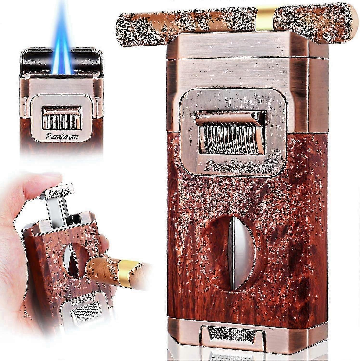 All-in-One Torch Cigar Lighter with Built-in Cigar Cutter V Cut, Cigar Holder, Dual Windproof Jet Flame, Butane Lighter with Gift Box, Cool Lighters f