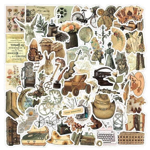 50 Pcs Retro Stickers in Old Style Decorative Laptop Literary DIY Hand Account Material Stickers Waterproof Type B