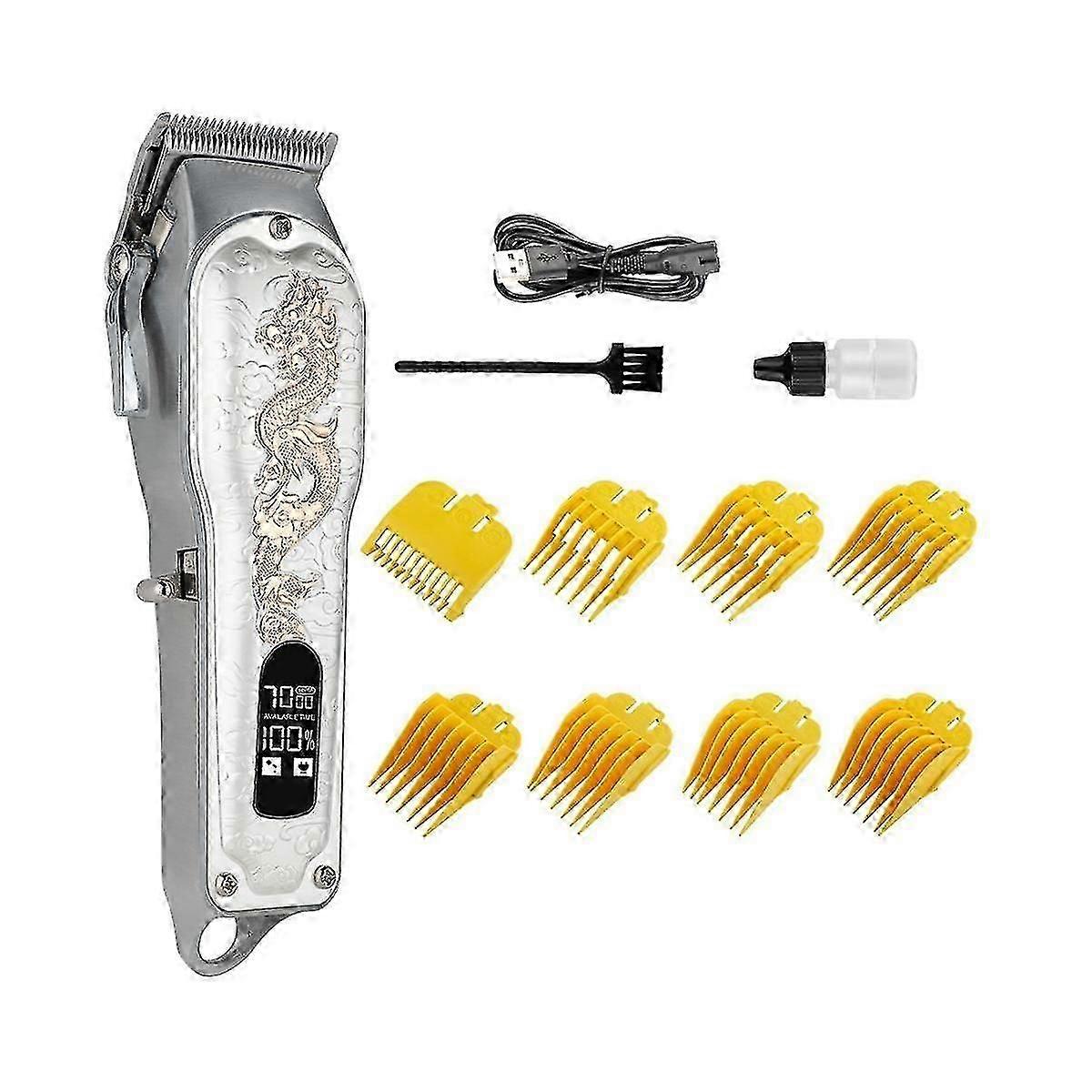 All Metal Dragon Pattern Retro Electric Hair Clipper Rechargeable Hair Trimmer Lcd Hair Dedicated Barber Machine,a