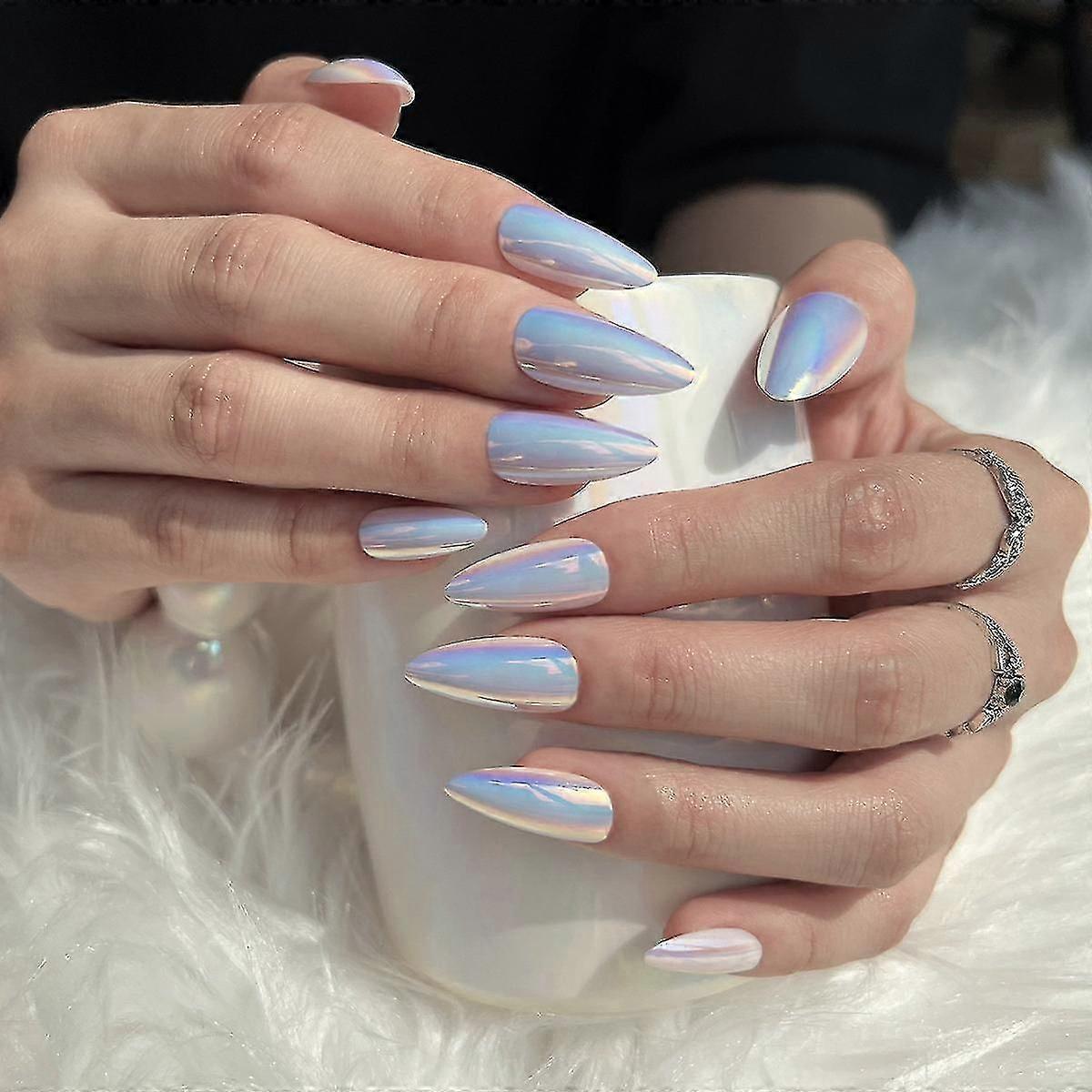 Aurora Wearing Armor Long European And American Nail Art Patch Wearing Fake Nail Finished Electroplated Pointed Nail Patch