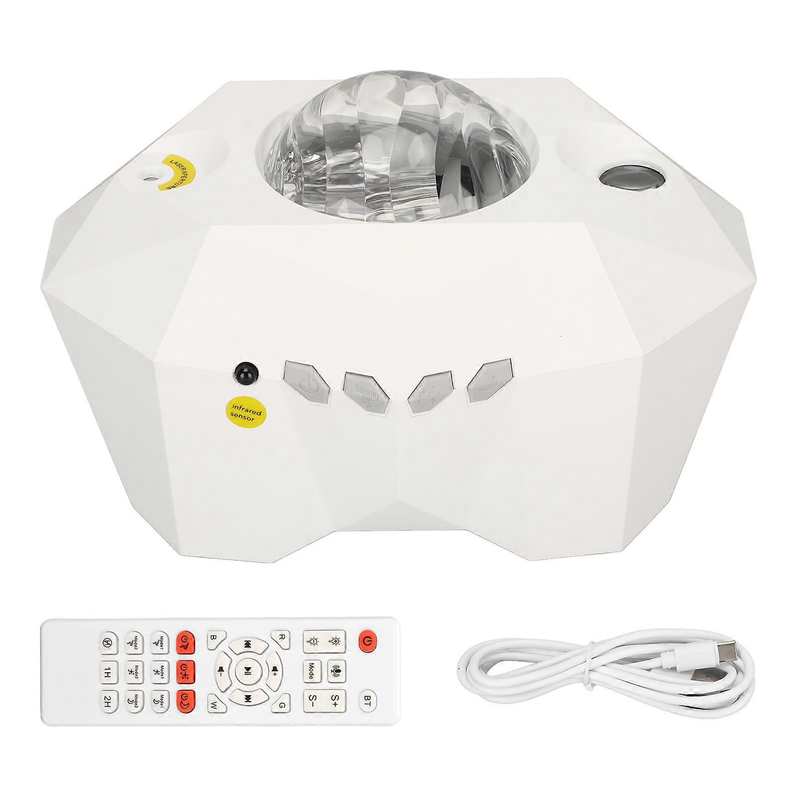 Features: 1.LATEST TECHNOLOGY: Equipped with the latest technology and premium materials, the star projector light projects vivid moons, free flowing northern lights and twinkling stars to help adults relax after a stressful day and motivate children's curiosity about the universe and planets. 2.MULTIPLE PROJECTION EFFECTS: With 15 Northern Lights colors and 60 projection effects, the projector lamp offers amazing and beyond expected versatility with 3 projection lenses designed for projecting stars, different colors of Northern Lights and moon, either simultaneously or individually. 3.REMOTE CONTROL: You can easily adjust the Northern Lights color, Northern Lights flow rate, projection mode, brightness, etc. with the remote control or buttons on the projector, which is easy to operate. 4.AUTOMATIC TIMER AND BRIGHTNESS CONTROLLER: Projector light will automatically turn off according to your preset timer (after 1, 2 or 4 hours) and there are 5 brightness levels (20%, 40%, 60%, 80% and 100%) that you can adjust accordingly to avoid disturbing your child's sleep. 5.MUSIC SPEAKER: Northern lights projector light has a built in Bluetooth speaker and is upgraded to HiFi sound quality for cleaner sound quality and more stable connection, perfect for interacting and exploring with family, friends and kids. 6.VOICE ACTIVATION: After activating the sound, the stars and Northern Lights will move and change rhythmically to the music beat, breaking the monotony of daily life (Language activation needs to be in Bluetooth mode). specification:Item Type: Northern Lights Projector Light Material: ABS Color: White Remote Control Battery: 2 x AAA (Without) Light Effect: 15 Kinds of Northern Lights Color Options and 60 Kinds of Combination Effects LED Light Source: Northern Lights 1 x 4W , Moon 1 x 3W Single Point Laser Power: Less Than 1mw Power Consumption: 7?10W Projection Area: 215?861 Square Feet (20?80 Square Meters) Adjustable Northern Lights Flow Rate and Noiseless Motor Design: There Are Four Available Flow Rates: Fixed, Slow, Medium and Fast. You Can Easily Set The Northern Lights to Stationary Or Adjust The Flow Rate for Different Projection Effects 5 Brightness Modes and 1H, 2H, 4H Timers: Choose From 5 Brightness Levels (20%, 40%, 60%, 80% and 100%) and Adjust The Timer to Automatically Turn Off After 1, 2 or 4 Hours PackageList:1 x NorthernLightsProjector Light 1 x Remote Control 1 x Data Cable 1 x Instruction Manual