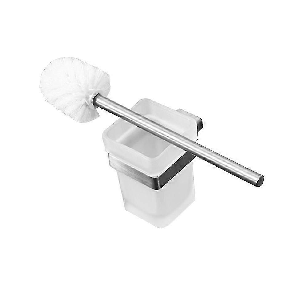 Stainless Steel Wall-Mounted Toilet Brush Holder with Glass Cup - Silver