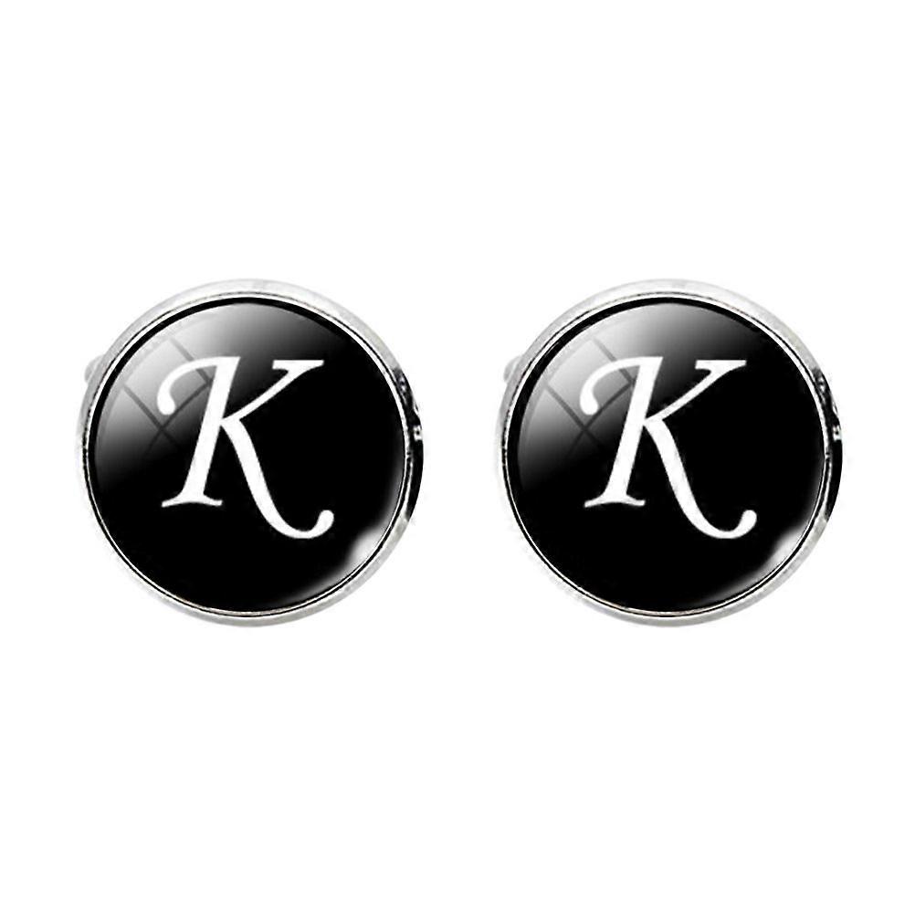 Glass Cuff-Link Sleeve Button Round English Letter Sleeve Button All-Match Decorative Collar Sleeves Button for Man (K Letter Pattern)