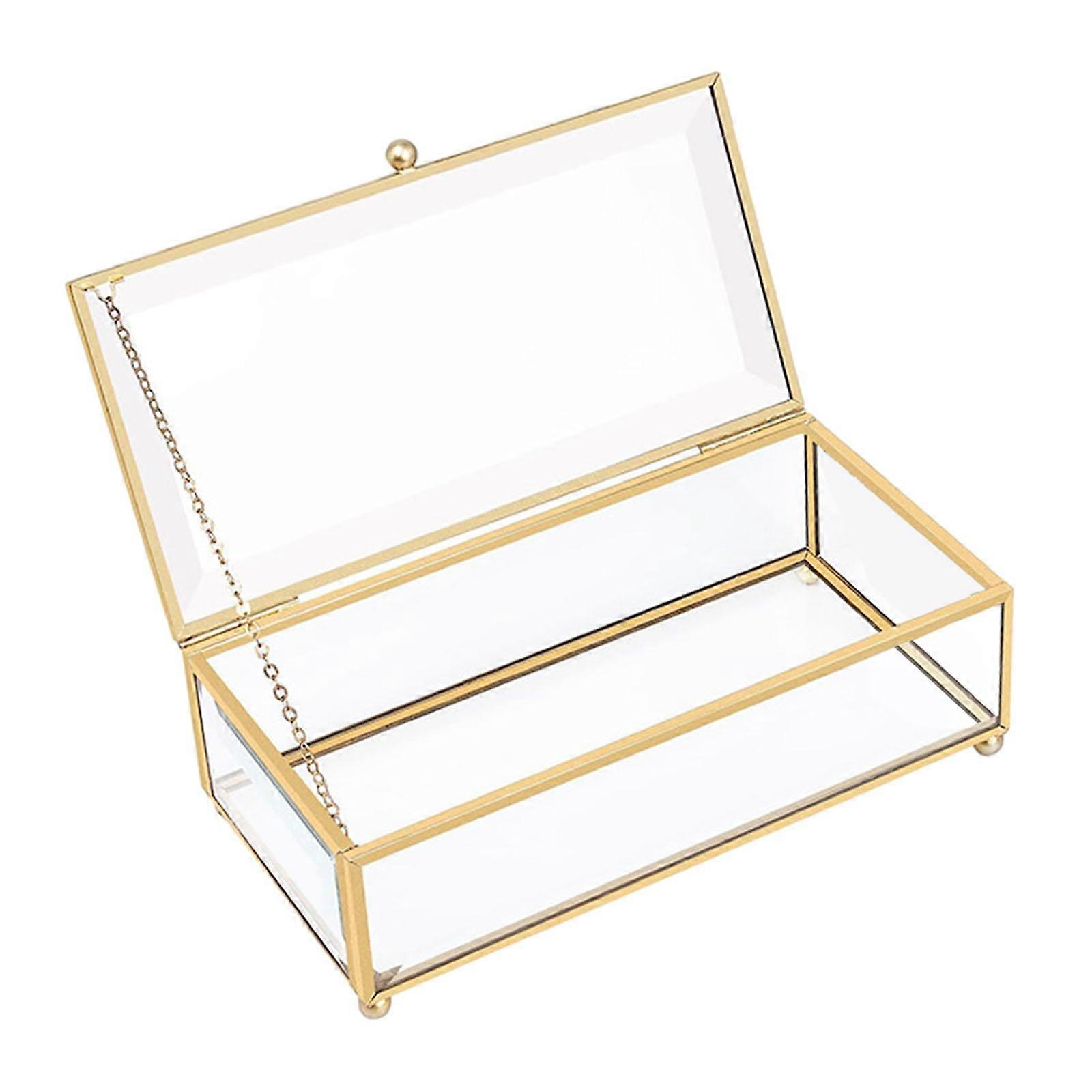 Glass Jewelry Box Keepsake Decor Jewelry Case for Watches Pendants Bracelets Golden Round Head