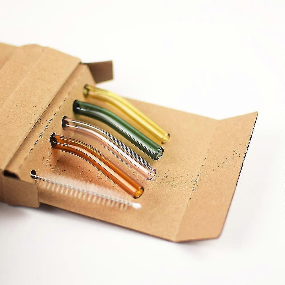 Glass Straws Clear Bent 200mm*8mm - 4 Pack With Cleaning Brush