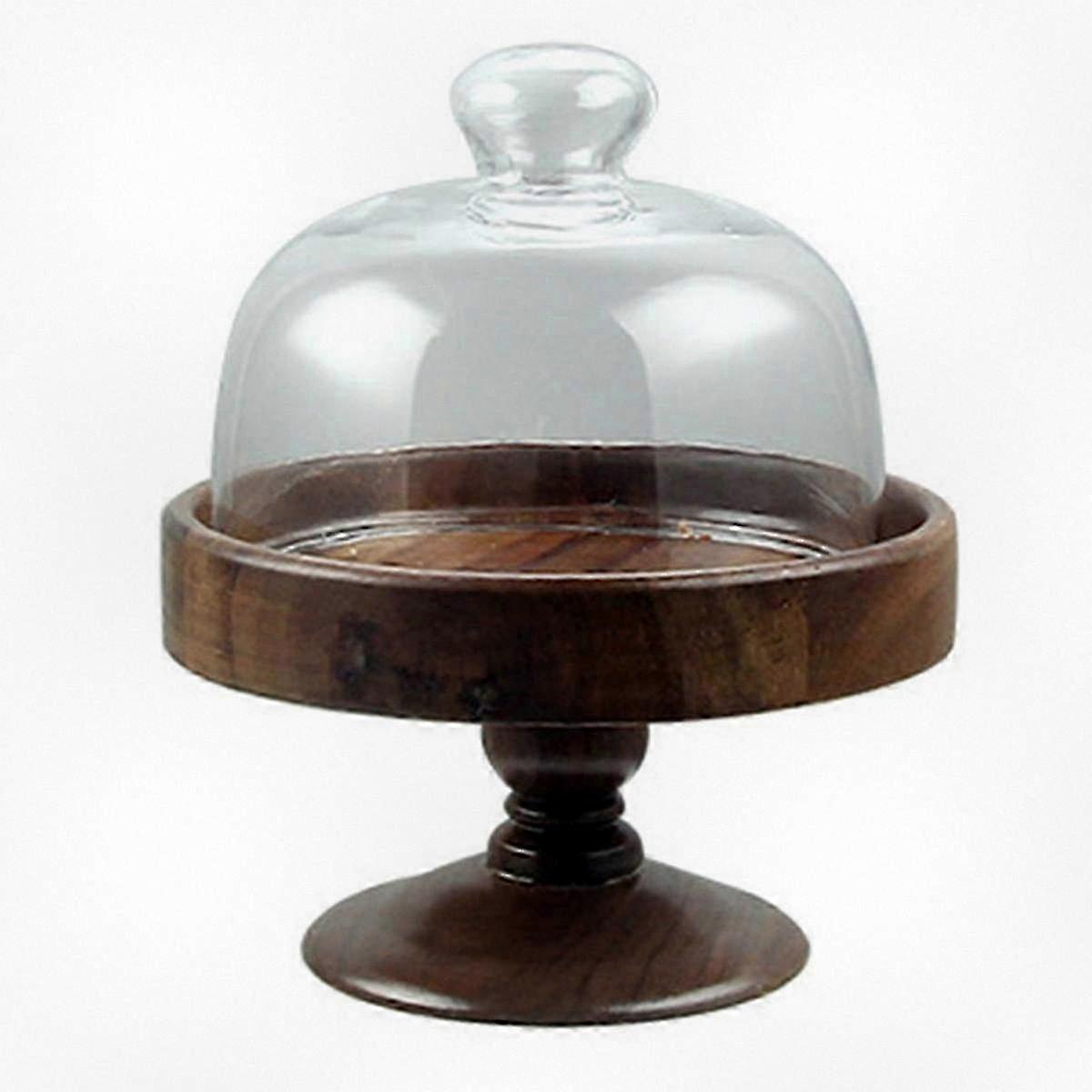 Stylish Tall Cake Stand with Glass Dome - Wooden and Glass Dessert Tray, Serving Dish for Pastries and Snacks