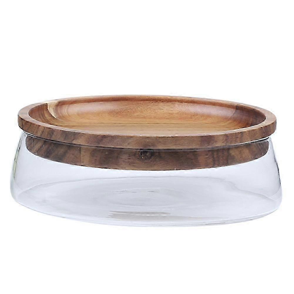 Glass Bowl Fruit Nut Dried Storage Box Container Fruit Tray Wooden