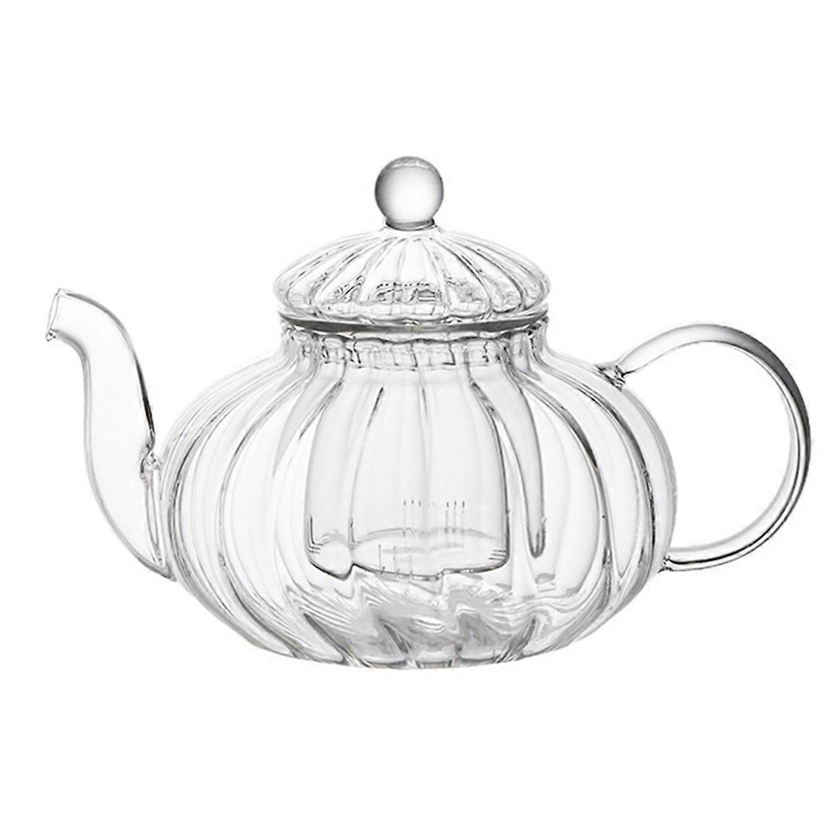 Glass Pot Striped Pumpkin Shape Flower Teapot Glass Teapot with Infuser Tea Leaf Flower TeaCup