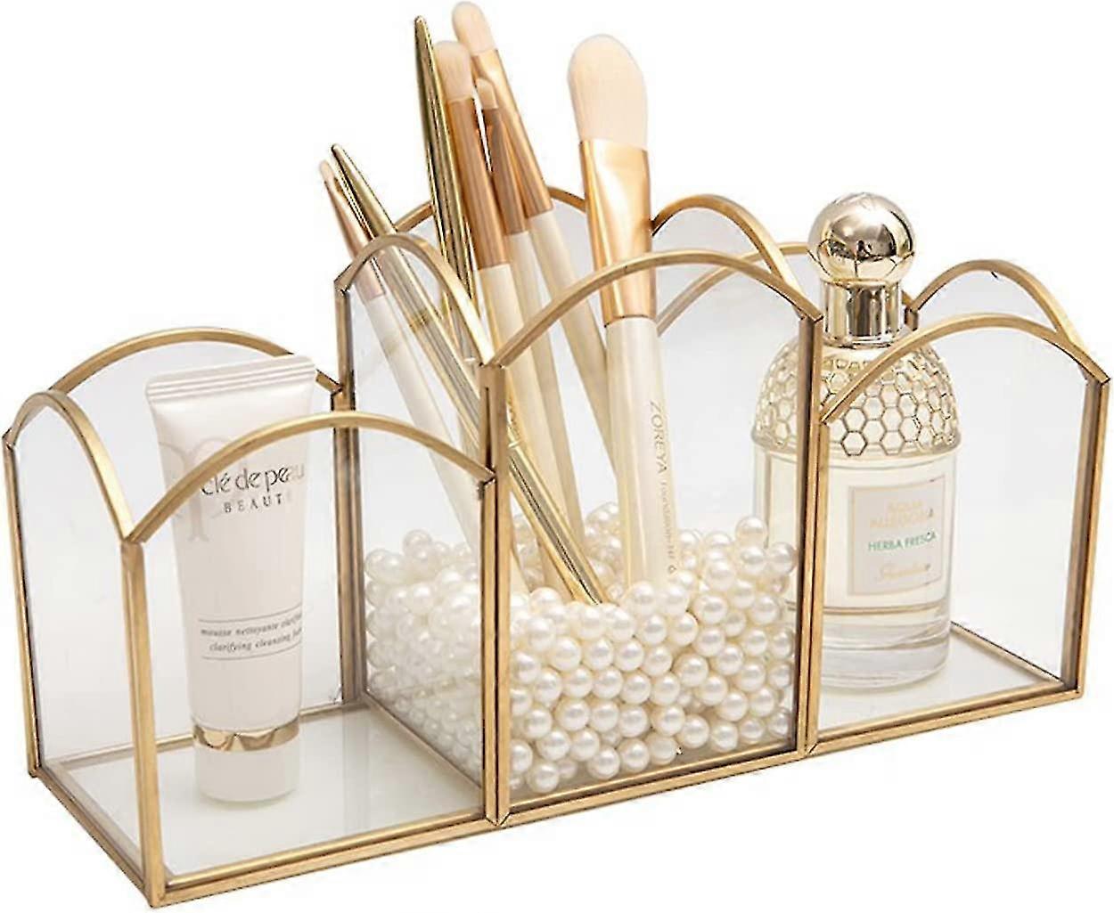 Stylish Handmade Brush Storage --- The gold metal handmade brush storage rack is made of thick glass, which is durable, chic and elegant. Our designers have combined aesthetics and functionality in this makeup brush holder.