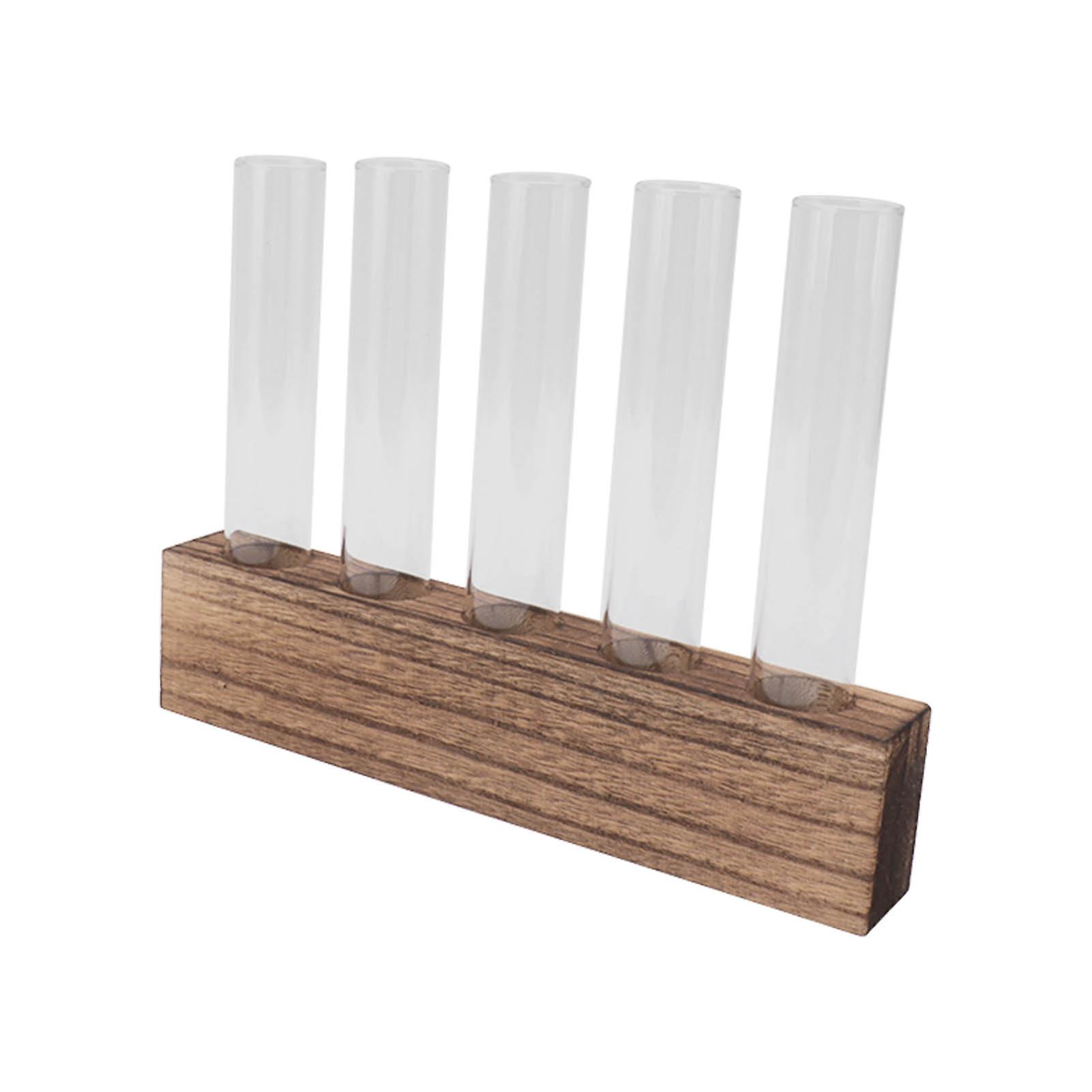 Glass Plant Propagation Station Plant Propagation Tubes Desktop Plant Terrarium With Wooden Stand Mini Test Tube Home Decor 5 Tubes