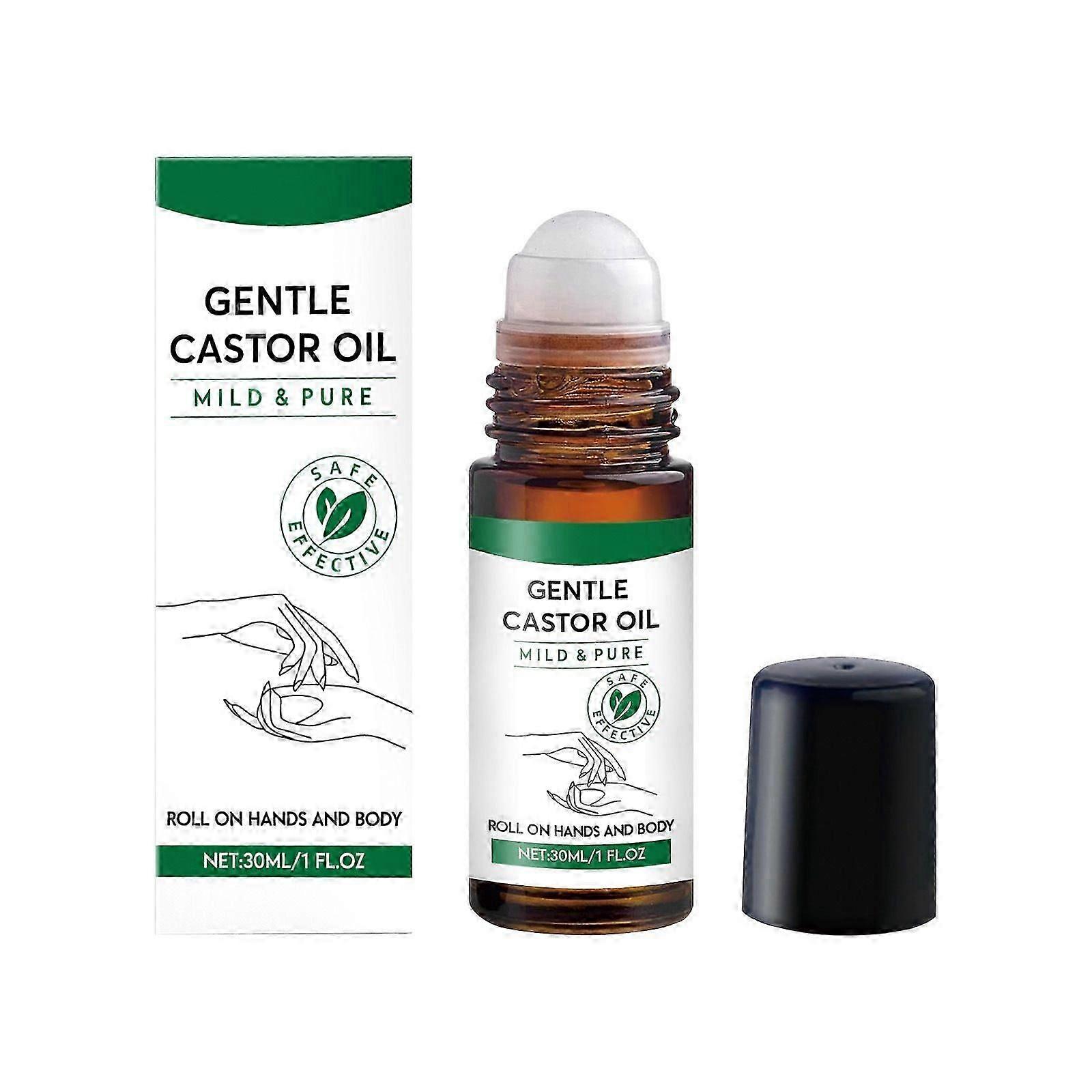 Organic Golden Castor Oil Roll-On in Glass Bottle, Organic Castor Oil Roller for Body Hair Skin Lip Eyebrow, Pure Organic Cold Pressed Essential Oil