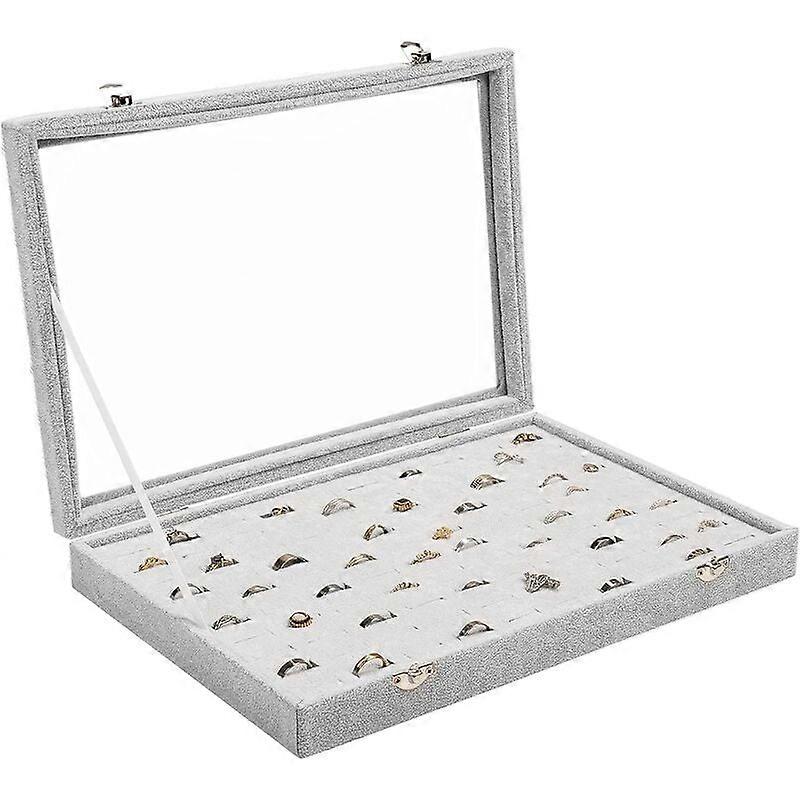 Velvet Ring Storage Box with Glass Lid and 100 Slots for Jewelry