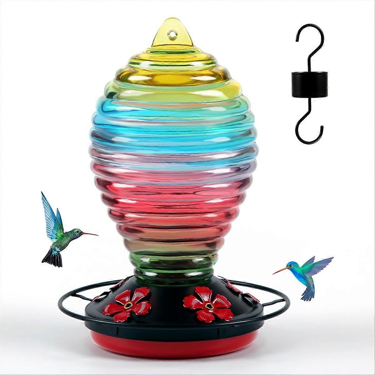 Glass Hummingbird Feeder, Rainbow Hummingbird Feeders, 29 Ounces