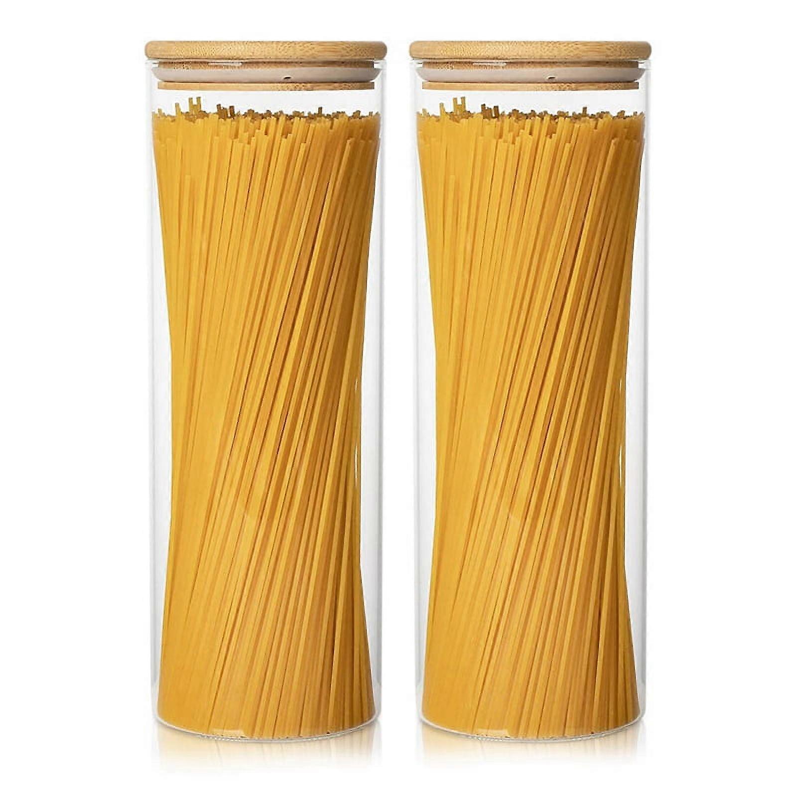 Glass Storage Containers Set of 2 71Oz Tall Spaghetti Jars with Bamboo Lids - Kitchen Food Storage Canisters for Pasta