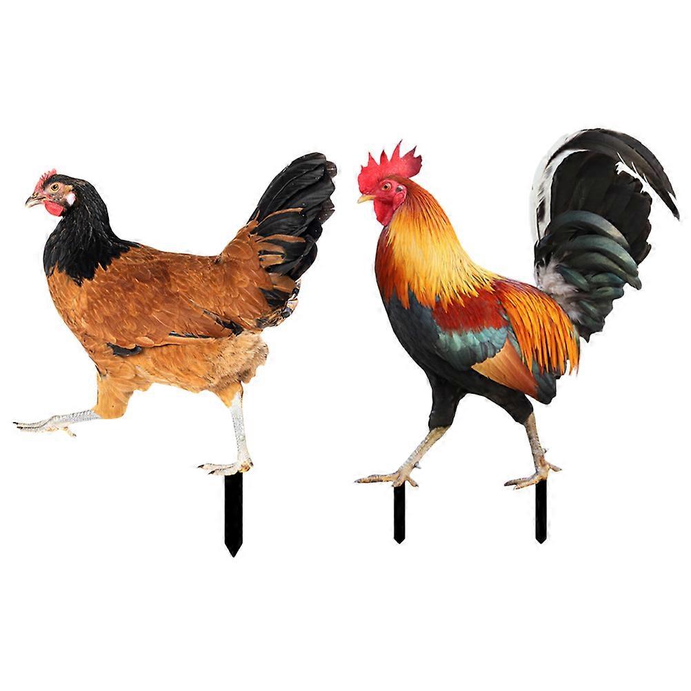 Garden Chicken Ground Plug Acrylic Lawn Decoration Assorted Color 16.7X21.2CM Realistic Design 2Pcs
