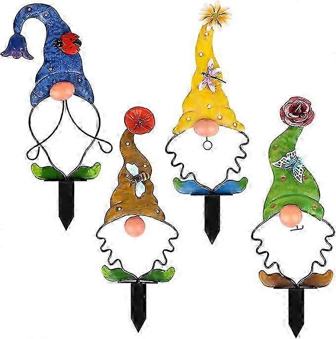 Garden Gnomes Decoration Yard Stake Metal Knomes Outdoor Home Decorative Lawn Ornament Patio Sign, 4 PCS