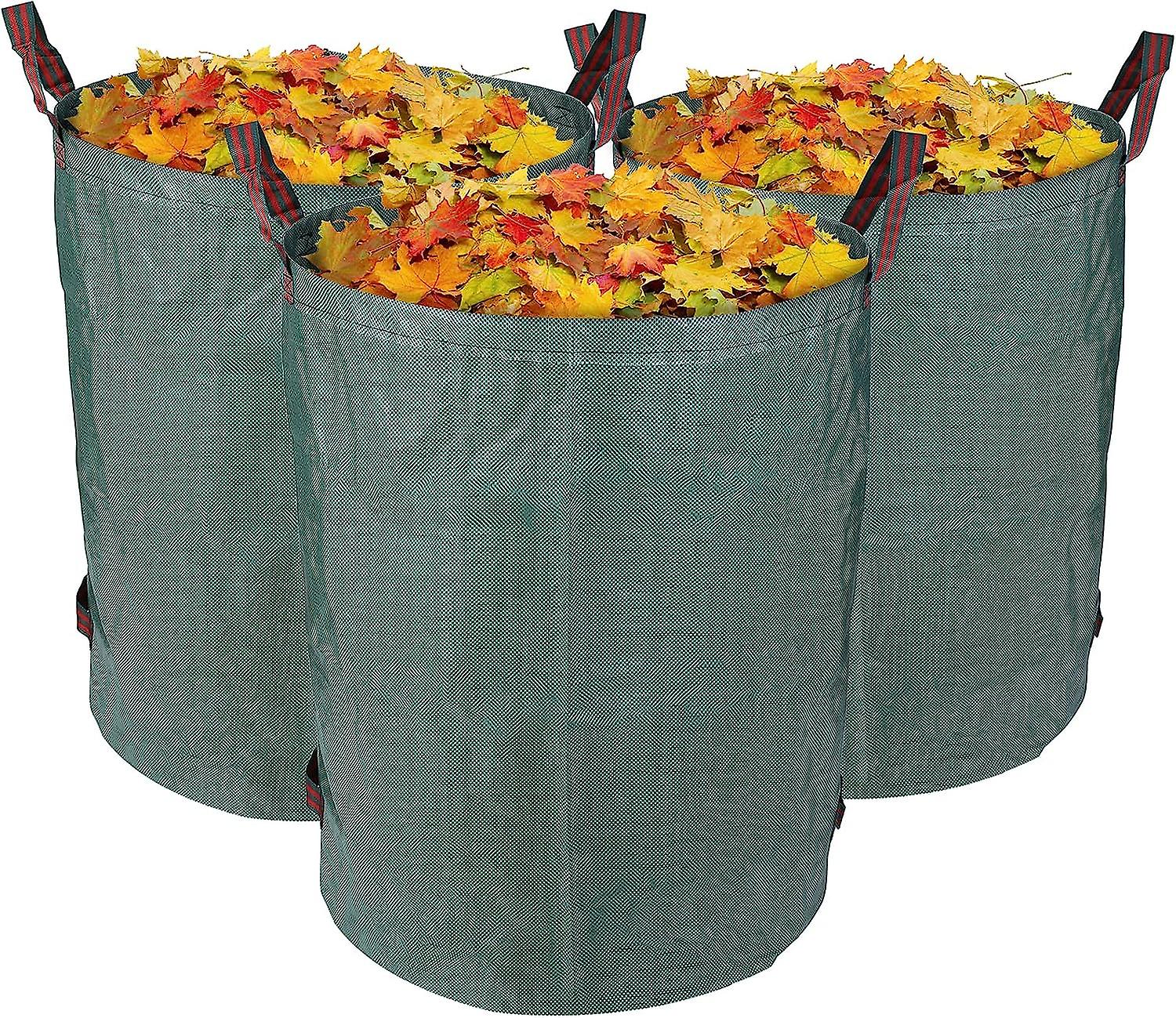 Pack of 3 Garden Bags 300 L, Foldable and Reusable, Stable, UV Resistant, Bag for Grass Leaves, Garden Waste