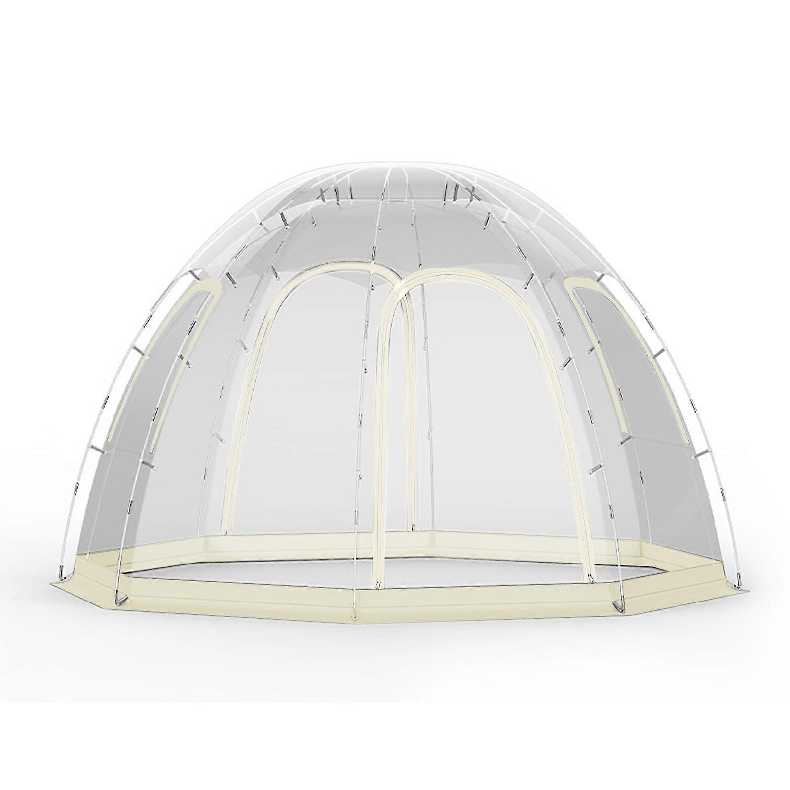 Garden Party Tent 8-10 Person Bubble Tent Dome Gazebo Mini Greenhouse Outdoor Large Instant Weatherproof Shelter for Party Cold-Resistant Tent Colour: White/Beige(Optional) Material: High-Density Mesh, PVC Load Capacity: 8-10 people Color: Transparent Size: Height 2.3m/90.9in, Diameter (Diagonal) 3.8m/148.1in, (Face-to-Face) 3.6m/142.2in Packed Size: 58 x 33 x 42cm/22.8 x 13 x 16.5in Weight: 15000g/33.069lb
