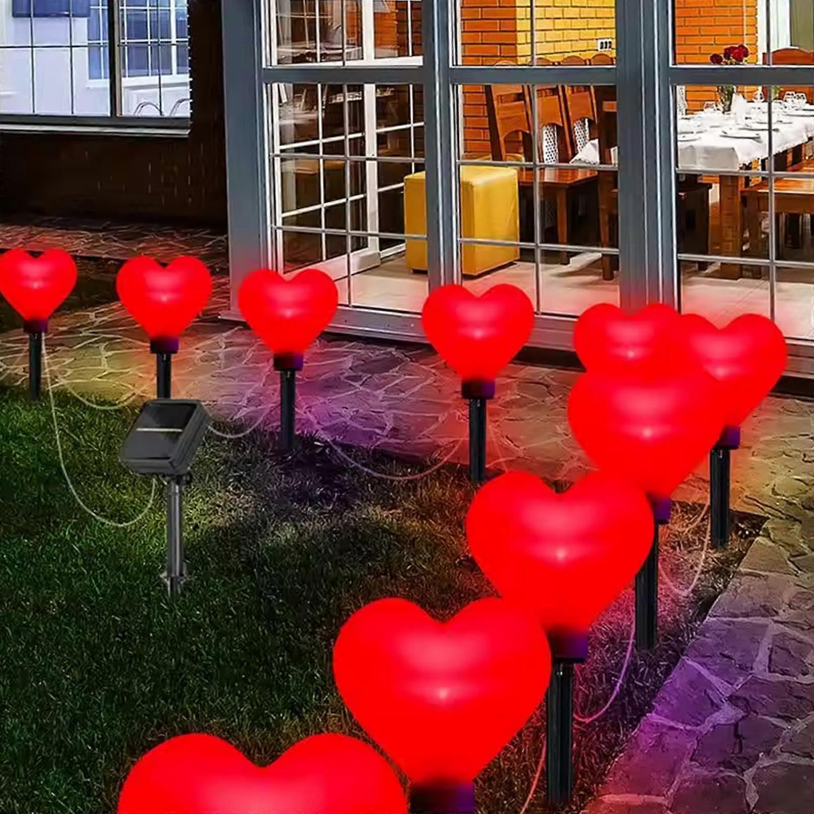 Pathway Lighting for Garden, 4PCS Waterproof Heart Solar Lights Set for Valentines Day Decorations, Outdoor Flowerbed Walkway Illuminate