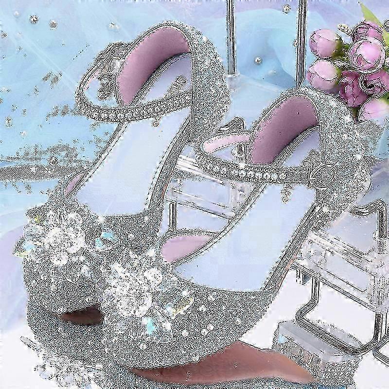 Girls Crystal Shoes Cinderella Princess Shoes Children's High Heels Glass Rhinestone Girls Shoes