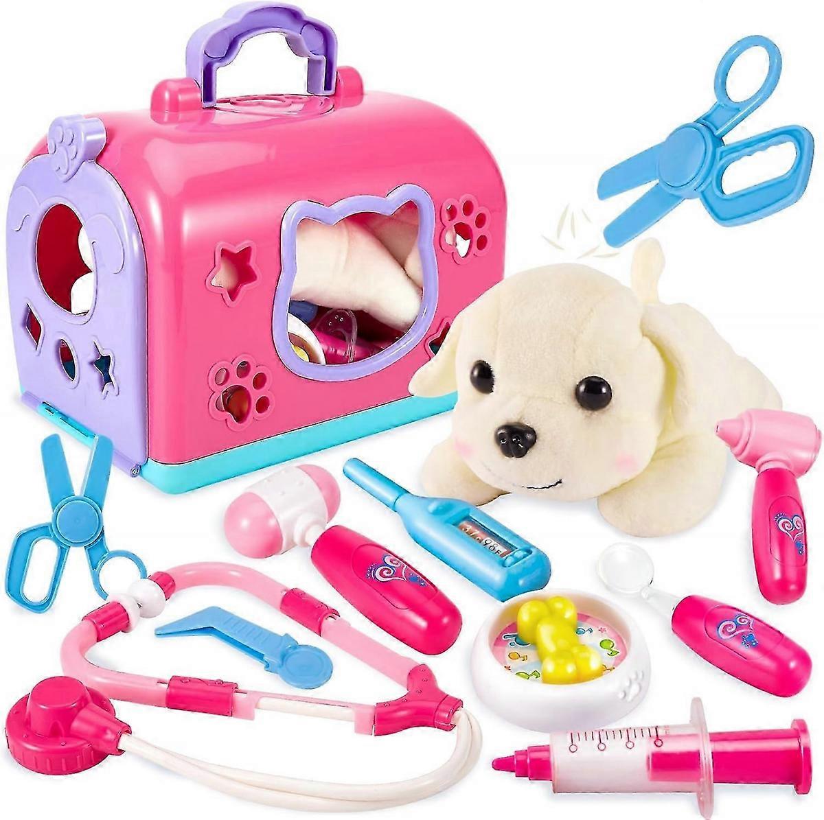 Girls Doctors Vet Set Toys for Kids, Toy Plush Dog Vet Set, Pet Care Role Play Toy Gift for 3 Year Olds Girl, Dog Crate