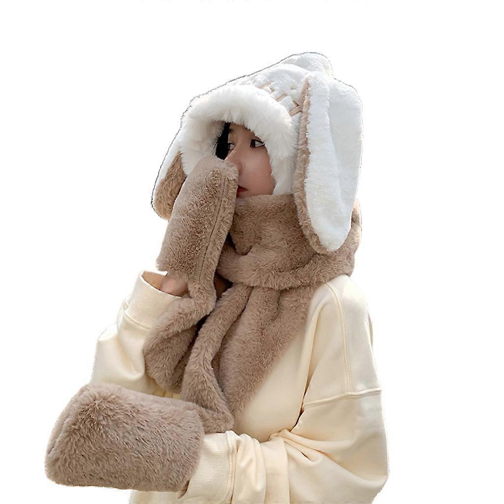 Girls Hat Rabbit Ear Shaped Three-piece Scarf Gloves In One Winter Accessory