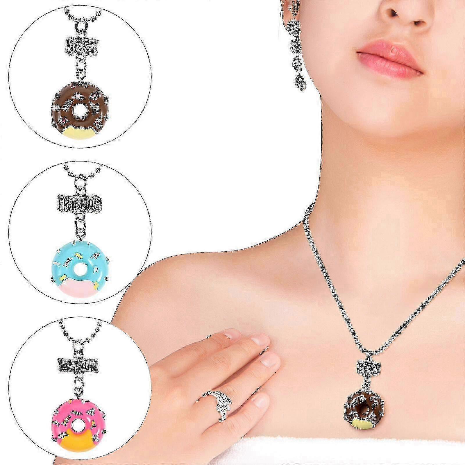 Girls Friendship Necklace Set - 3 Pcs Donut Charm Best Friend Jewelry 2025
