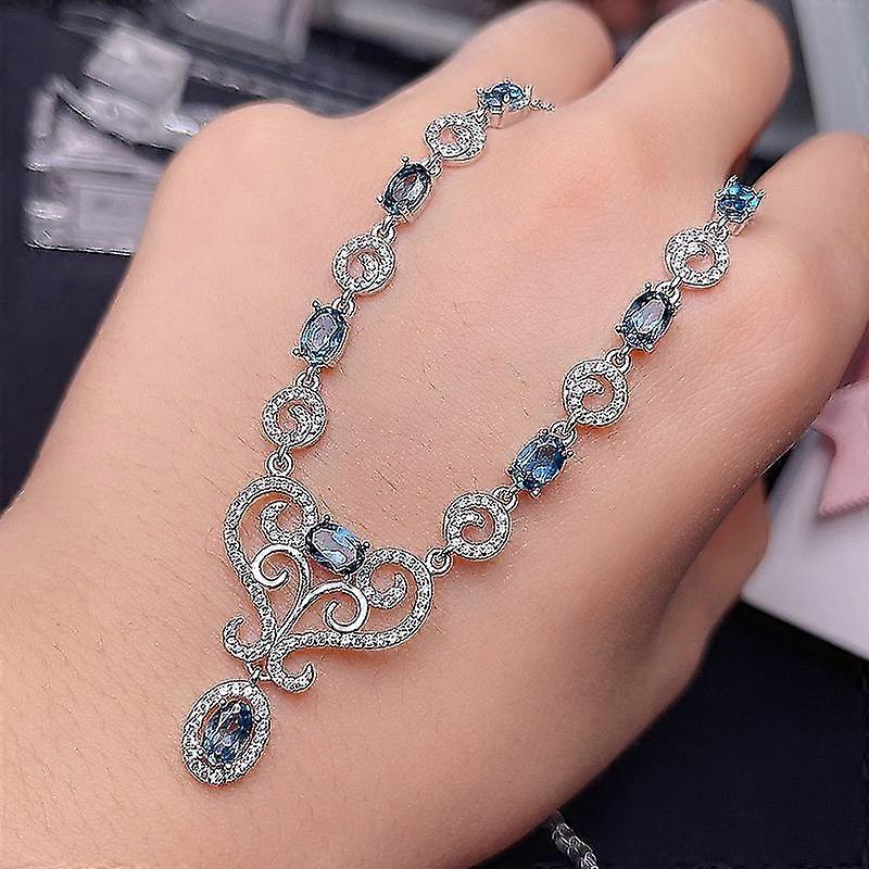 Gift for girlfriend lover 925 sterling silver Natural London Blue Topaz Chain Row Inlaid London Topopa Clavicle Necklace Ladies' Pendant