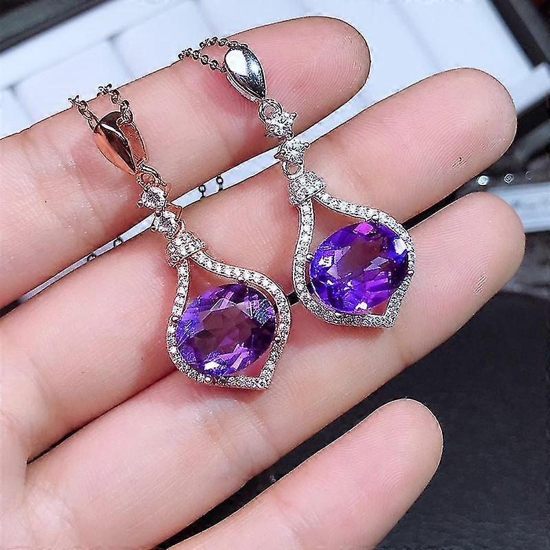 Gift for girlfriend lover 925 sterling silver New Amethyst Pendant Inlaid Electroplating 18k Gold