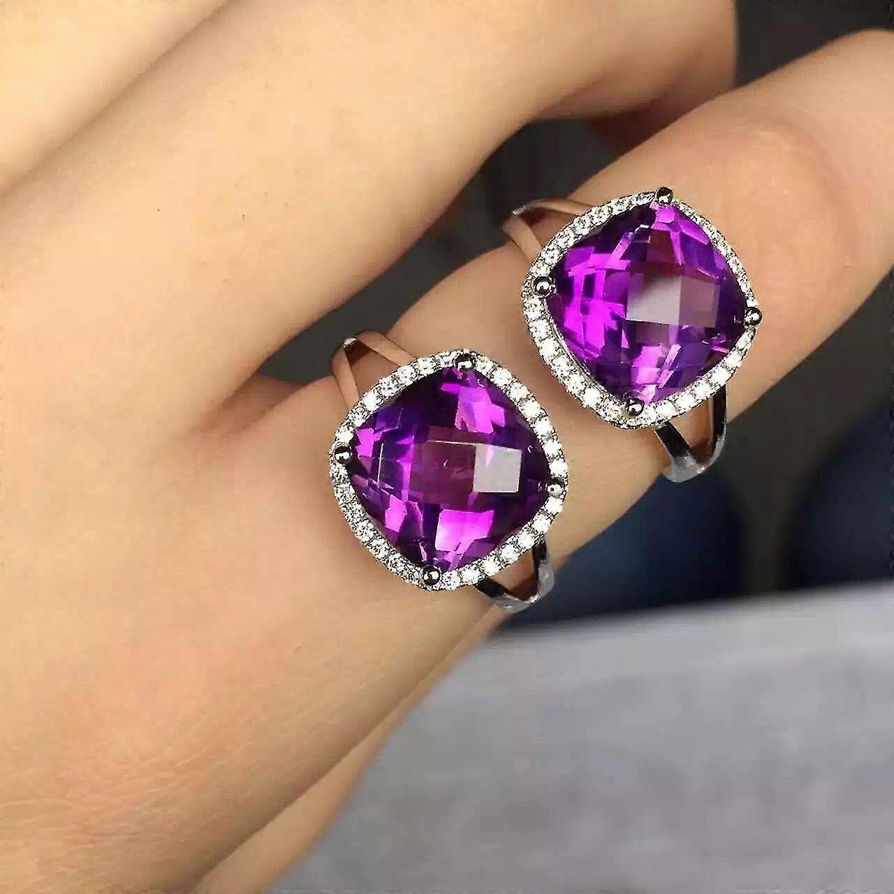 Gift for girlfriend lover 925 sterling silver Atmospheric Lattice Surface Piezoelectric Amethyst Ring 925 Sterling Silver U-work Inlaid