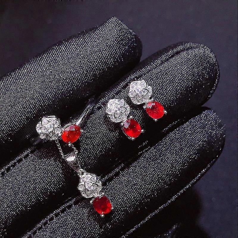 Gift for girlfriend lover 925 sterling silver New Braised Red Treasure Set Inlaid Red Treasure Set Rings Open Mouth Gifts For Girlfriend