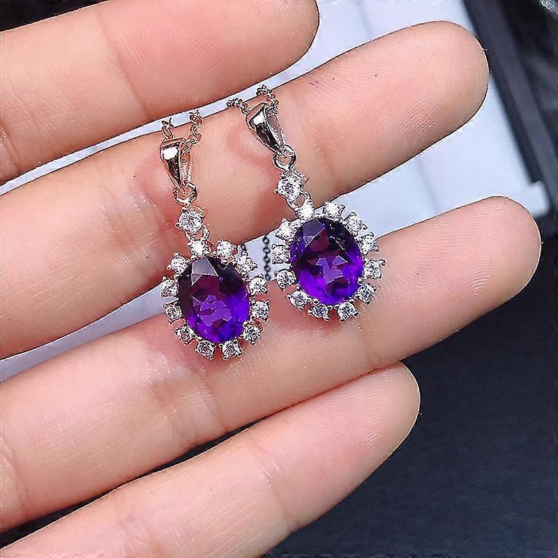 Gift for girlfriend lover 925 sterling silver Amethyst Pendant Inlaid Electroplating 18k Gold