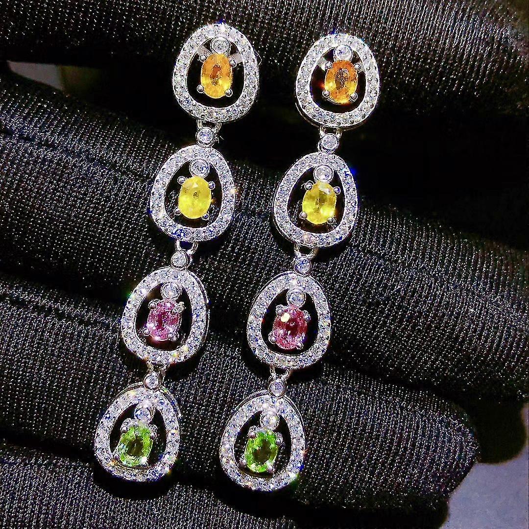 Gift for girlfriend lover 925 sterling silver Natural Color Sapphire Stud Earrings Luxury New Gemstone